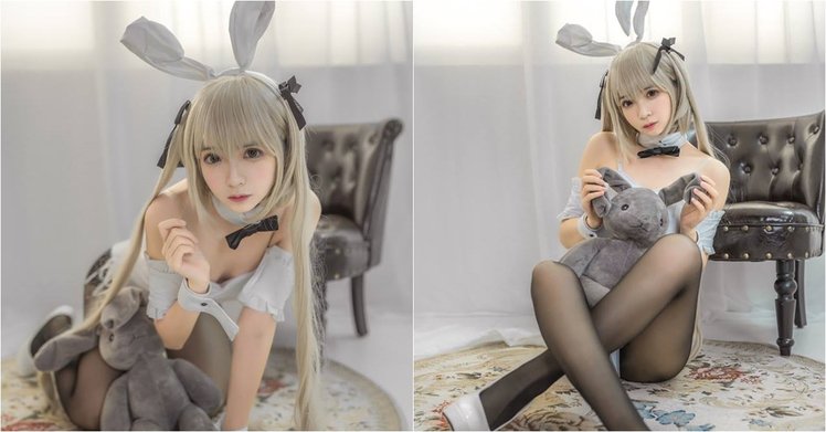 兔女郎裝配黑絲襪」性感撩人讓人想入非非